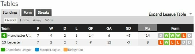 - ก่อนแข่งเกมนี้ แมนฯ ยูไนเต็ดรั้งรองจ่าฝูงของตาราง แข่งไป 7 นัด มีอยู่ 14 แต้ม