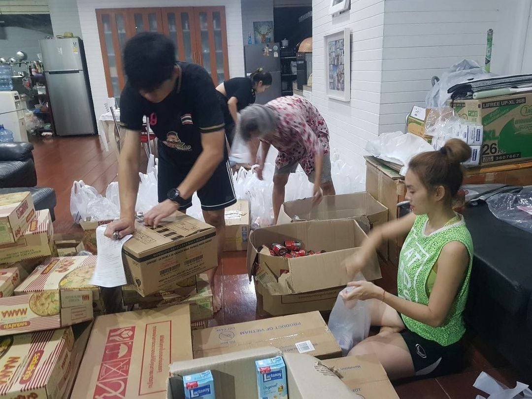 โดยเป็นภาพบรรยากาศของเจ้าตัวและทีมงานขณะกำลังร่วมกันลงทุนลงแรงทำถุงยังชีพ พร้อมแนบแคปชั่น บอก จะนำไปแจกจ่ายให้กับชาวบ้านผู้ประสบภัยน้ำท่วมที่จังหวัดอยุธยากว่า 500 บ้าน โดยระบุว่า