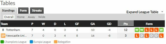 - นิวคาสเซิ่ล หาชัยชนะไม่เจอมาแล้ว 7 นัดติดต่อกัน (เกมลีก)