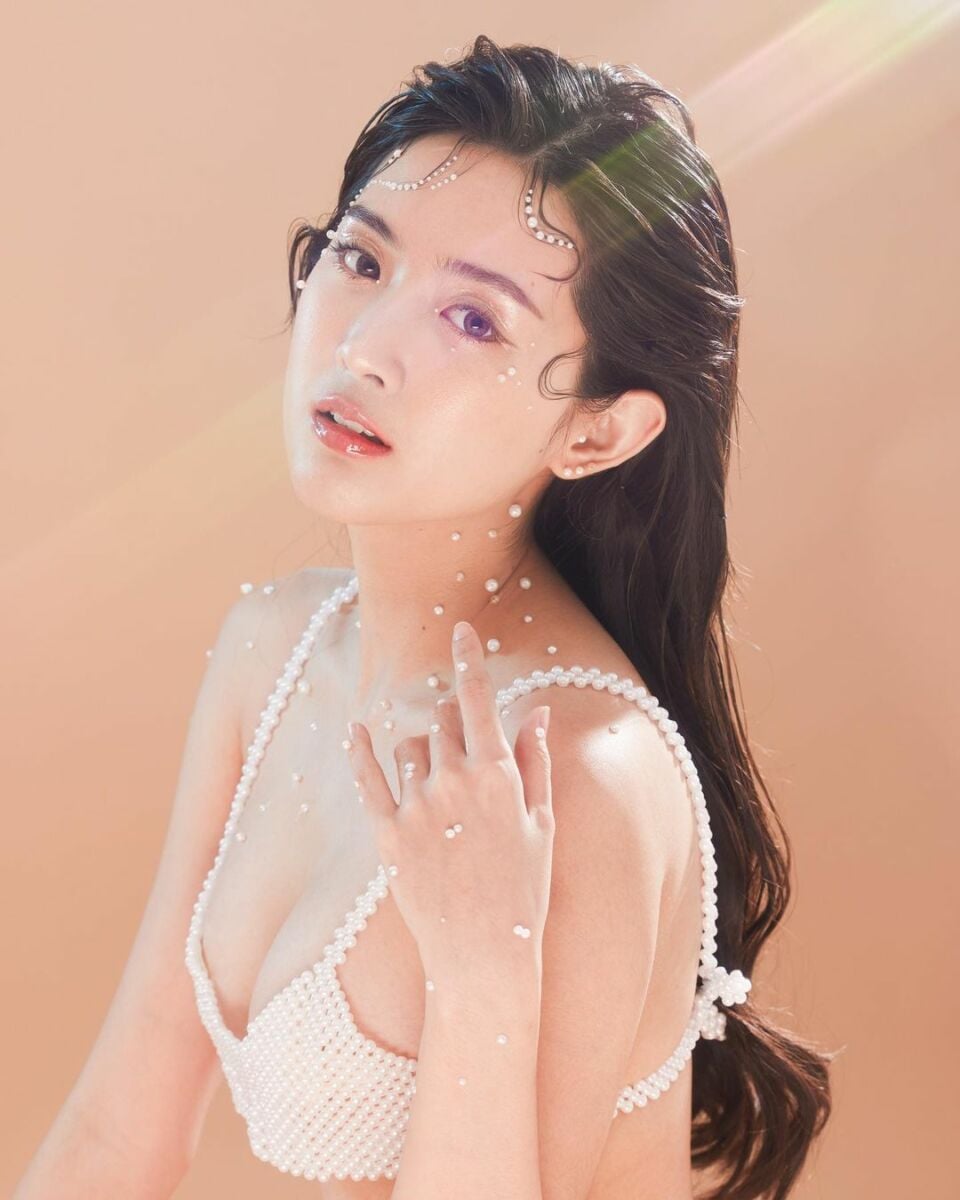 มาในชุดชุดว่ายน้ำวันพีซสีแดงสุดน่ารักปนเซ็กซี่นิด ๆ เสริมความแบ๋วด้วยการนำดอกไม้มาทัดหู บอกเลยว่า น่าทะนุถนอมเป็นที่สุด พร้อมแนบแคปชั่น โดยระบุว่า