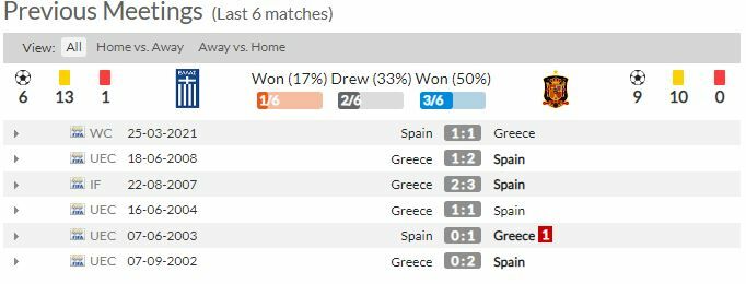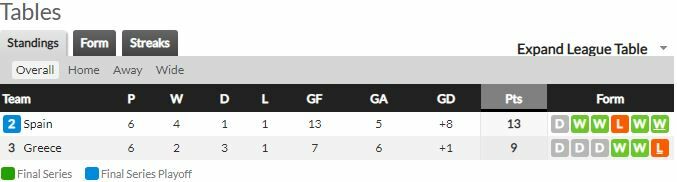 ทั้งสองทีมเพิ่งแพ้มาในการลงเล่นเกมล่าสุดทั้งคู่ อย่างไรก็ตาม สเปนดูจะมีขุมกำลังที่เพียบพร้อมกว่า และเป็นไปได้ที่จะบุกมาเฉือนชนะกรีซในเกมนี้