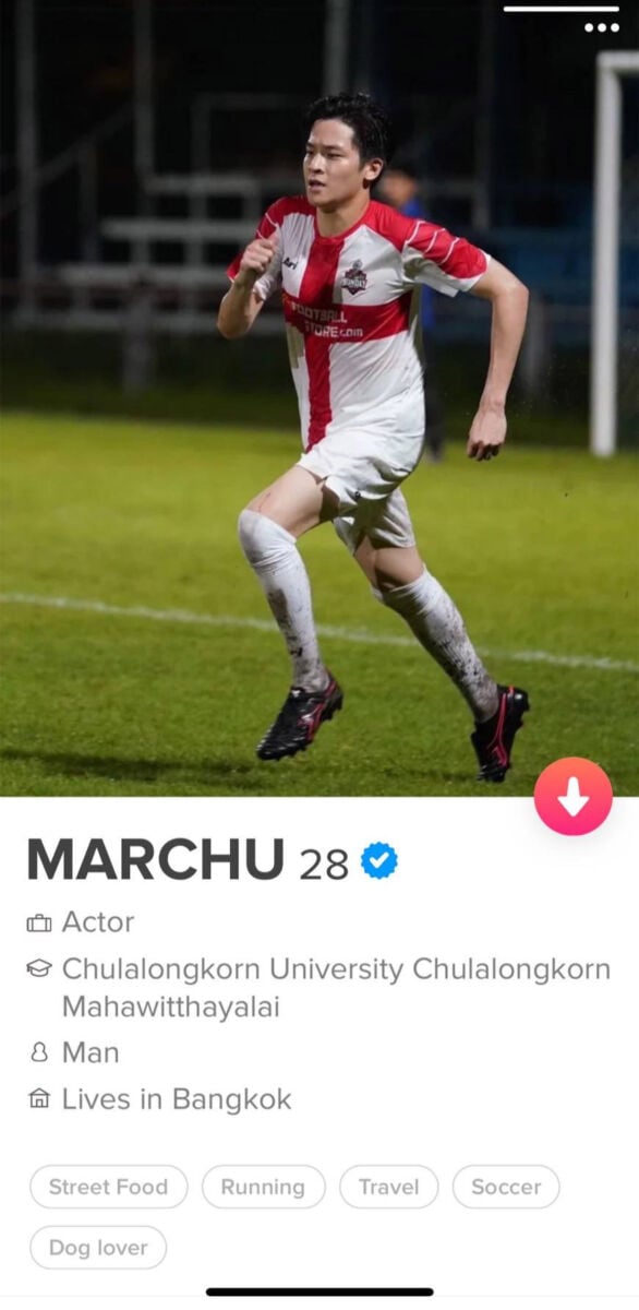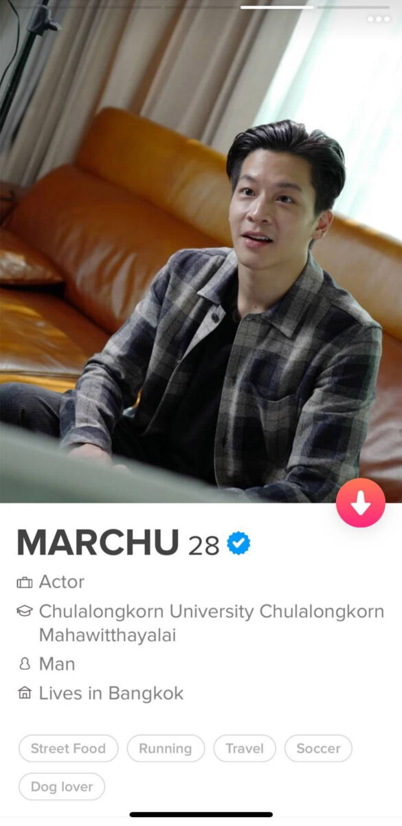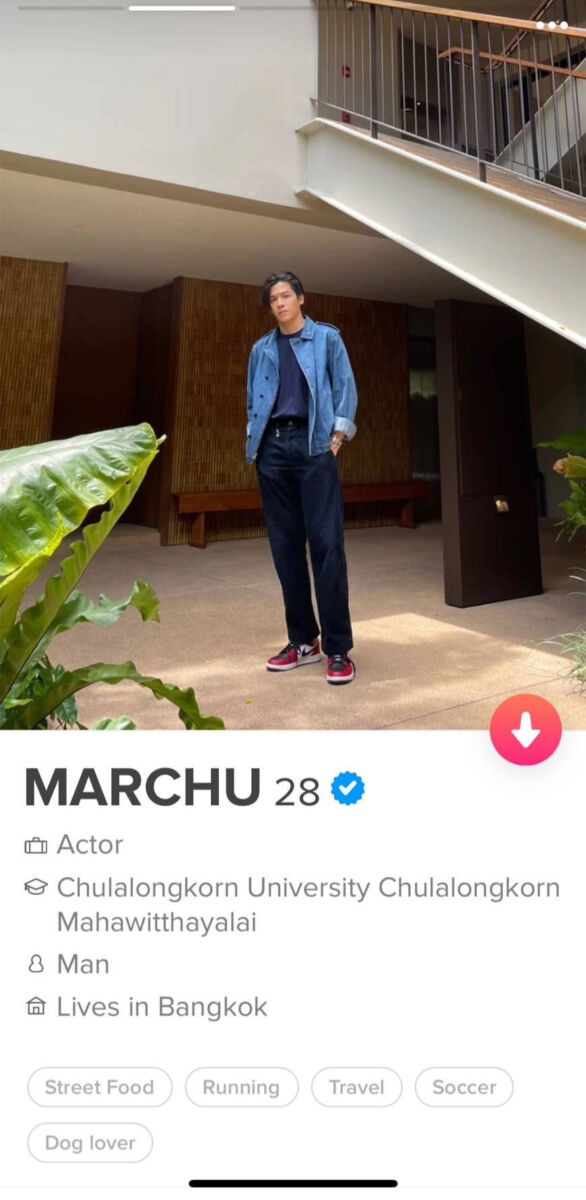 หนุ่มมาร์ชยังบอกอีกว่า “การมองหาคนที่มี Passion และความสนใจเหมือนกัน ถือว่าเป็นแนวทางดีๆ ในการที่จะคอนเน็คกับใครสักคนบน Tinder หลายคนอาจจะรู้ว่า ผมเป็น คนรักหมาแต่ผมก็แชร์ Passion อื่นบนโปรไฟล์ อย่าง สตรีท ฟู้ด, วิ่ง และ ท่องเที่ยว”