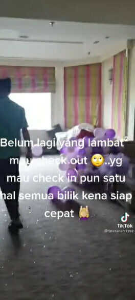 โดยจากคลิปจะเห็นได้ว่าสภาพห้องรกตั้งแต่ทางเข้า ทั้งพื้นที่เต็มไปด้วยกระดาษสี ริบบิ้น และลูกโป่ง รวมถึงลูกโป่งที่ติดอยู่บนม่านว่า “เจ้าสาว” ซึ่งจากสภาพที่สกปรกทำให้ เจ้าหน้าที่รักษาความสะอาดต้องใช้เวลานานกว่าที่จะเก็บกวาดจนหมด และทำให้ลูกค้าที่ใช้บริการห้องนี้ต่อได้เข้าห้องล่าช้า