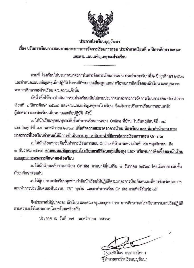 “หลายโรงเรียนเริ่มสั่งปิดเพราะมีการติดเชื้อโควิดครับ ล่าสุด สั่งปิดโรงเรียนสุวรรณารามวิทยาคม กรุงเทพฯ และโรงเรียนบุญวัฒนา จังหวัดนครราชสีมา”