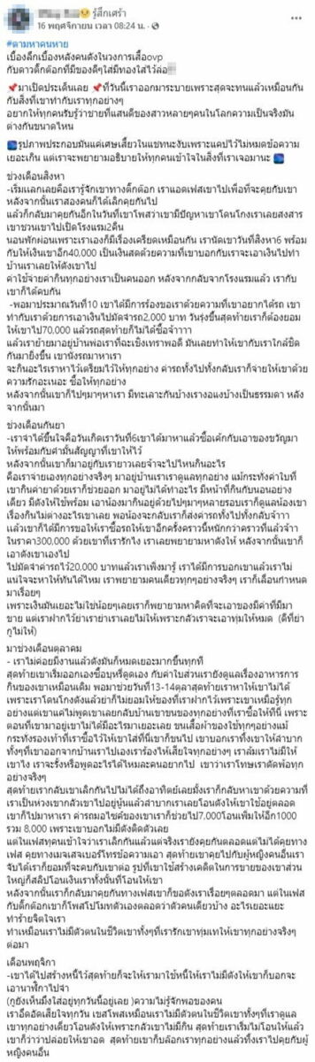 ผู้ใช้เฟซบุ๊กรายหนึ่งได้ออกมาโพสต์ข้อความเฟซบุ๊กบอกเล่าประสบการณ์พร้อมระบายความในใจ หลังจากที่เธอได้พบกับหนุ่ม TikTok คนหนึ่ง ซึ่งเธอรู้จักกับชายคนดังกล่าวไม่กี่วัน แต่หมดเงินไปเป็นแสนกว่าบาท