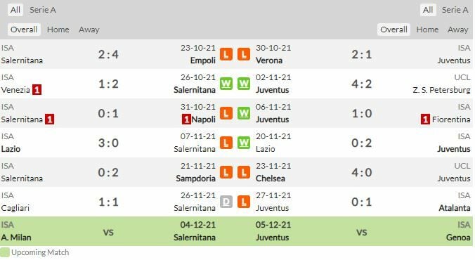 - 02/05/99 ซาแลร์นิตาน่า 1-0 ยูเวนตุส (เซเรีย อา)