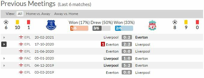 - เอฟเวอร์ตัน ลงเล่นในบ้านตัวเอง พบกับลิเวอร์พูลและได้ผลเสมอ 8 จาก 9 นัดหลังที่พบกัน (ทุกรายการ)