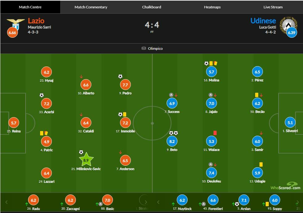 ผลบอล ลาซิโอ 4-4 อูดิเนเซ่