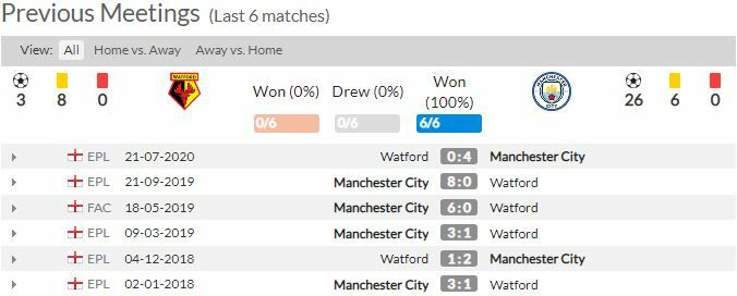 - แมนฯ ซิตี้ ลงเล่นพบกับ วัตฟอร์ด และเก็บคลีนชีตได้ใน 3 นัดหลังที่เจอกัน (ทุกรายการ)