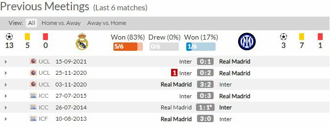 - เรอัล มาดริด เอาชนะอินเตอร์ มิลานได้ในทั้ง 4 นัดหลังที่เจอกัน (ทุกรายการ)