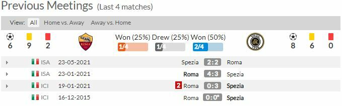 - โรม่า เสียประตูให้ สเปเซีย อย่างน้อยเกมละ 2 ลูก ใน 3 นัดหลังที่พบกัน (ทุกรายการ)