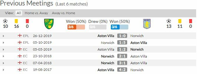 - แอสตัน วิลล่า เอาชนะ นอริช ได้ 6 จาก 7 นัดหลังในการเจอกัน (ทุกรายการ)
