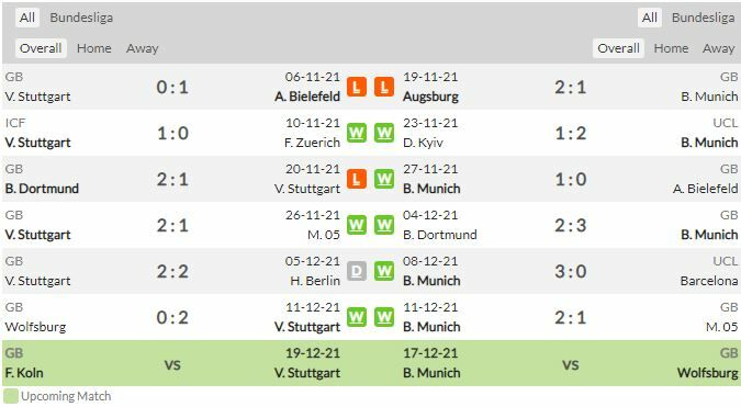 - บาเยิร์น มิวนิค มีสถิติ เอาชนะ สตุ๊ตการ์ท ได้ใน 20 จาก 21 นัดหลังที่เจอกัน (ทุกรายการ)