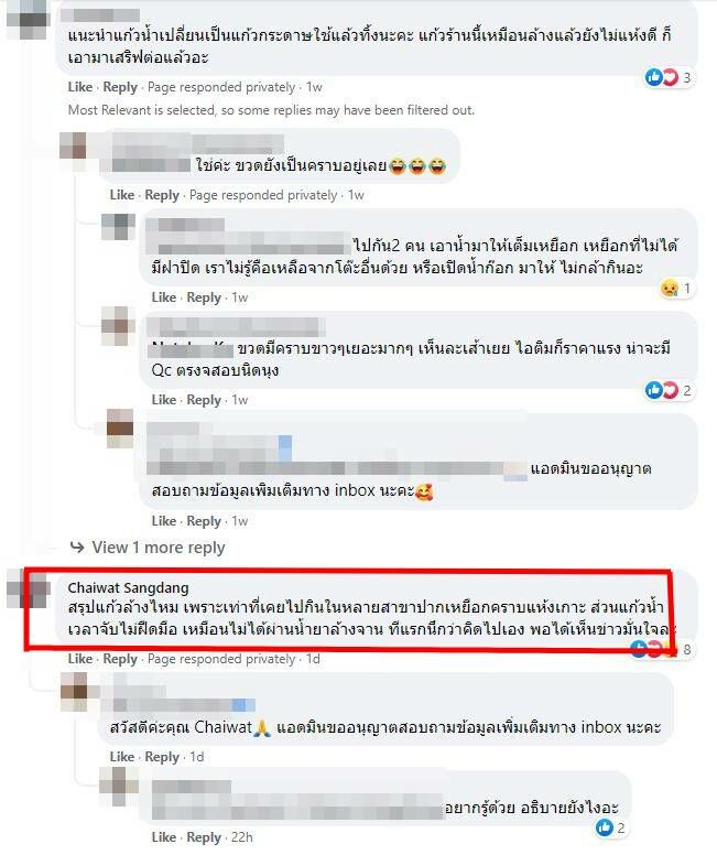 จนถึงเวลานี้ ยังไม่มีการออกมาชี้แจงอย่างเป็นทางการใดๆ เกี่ยวกับทางร้านไอศกรีมต้นเรื่อง ซึ่งจากหน้าเฟซบุ๊กแฟนเพจ จะมีเพียงแอดมินเข้ามาตอยคำถามเกี่ยวกับดราม่าไม่ล้างเหยือกน้ำ โดยพิมพ์ระุบว่า “แอดมินขอนุญาตสอบถามข้อมูลเพิ่มเติมทาง inbox นะคะ”