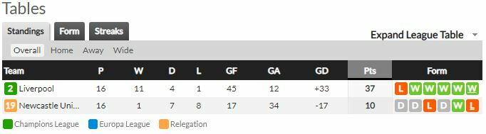 - นิวคาสเซิ่ล เอาชนะคู่แข่งไม่ได้เลยใน 15 จาก 16 นัดหลัง (เกมลีก)