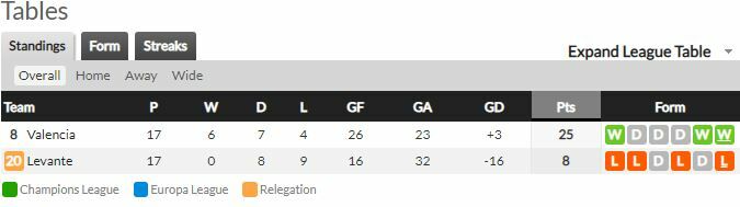 - บาเลนเซีย ลงเล่นพบกับ เลบันเต้ และไม่แพ้เลยใน 9 จาก 10 นัดหลัง (ทุกรายการ)