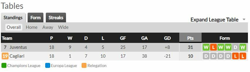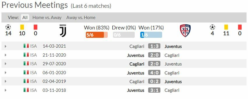 - ยูเวนตุส ลงเล่น พบกับ กายารี่ และเอาชนะได้ 9 จาก 10 นัดหลัง (ทุกรายการ)