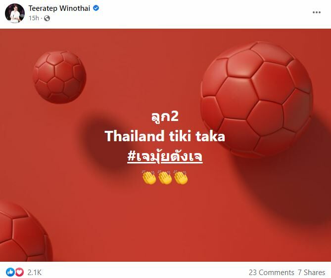 นอกจากนี้ยังโพสต์อีกครั้งหลังจบเกมด้วยว่า “Well done to all of you ยอดเยี่ยมมากทุกคน #สอนเชิงบอลเจ้าอาเซียนหน่อย #thailand #Changseuk #ยัดเยียดความปราชัยให้เหงียน เกือบแฮตทริกแล้ว ชนาธิป สรงกระสินธ์ เยี่ยมน้อง”