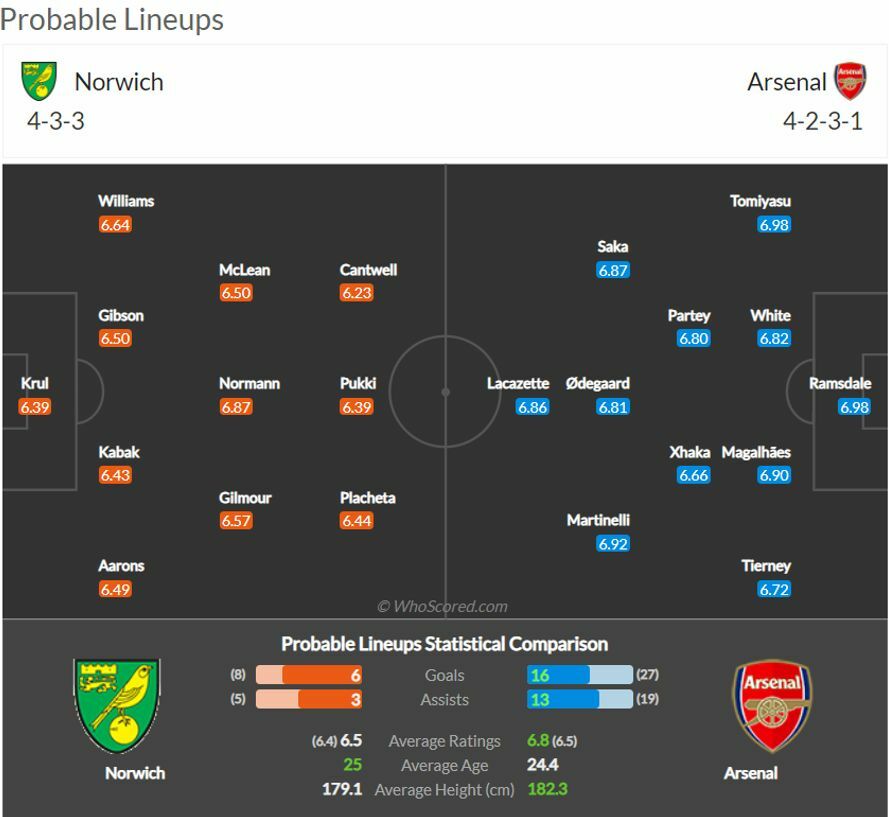 นอริช นอกจากฟอร์มยังไม่ดีแล้ว ยังต้องเจอปัยหานักเตะบาดเจ็บหลายราย สวนทางกับฝั่งผู้มาเยือนอย่าง อาร์เซน่อล ที่พกความมั่นใจมากเต็มกระเป๋า คาดว่าเกมนี้ลุกทีมของ มิเกล อาร์เตต้า จะเก็บสามแต้มกลับกรุงลอนดอนไปได้ในเกมนี้