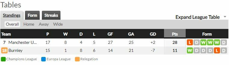 - แมนฯ ยูไนเต็ด ลงเล่นพบกับ เบิร์นลีย์ และไม่แพ้มาแล้ว ใน 12 จาก 13 นัดหลังที่พบกัน (ทุกรายการ)