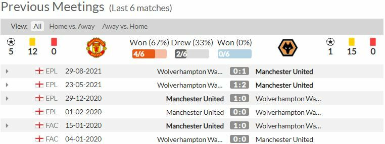 - แมนฯ ยูไนเต็ดไม่เสียประตูให้ วูล์ฟแฮมป์ตัน ใน 5 จาก 6 นัดหลัง (เกมลีก)