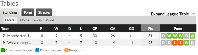 - บรูโน่ ลาช พา หมาป่า เก็บ 4 แต้มจาก 2 เกมล่าสุด โดยพวกเขาชนะ ไบรท์ตัน 1-0 (เยือน) และ เสมอ เชลซี 0-0 (เหย้า) ก่อนแข่งเกมนี้ วูล์ฟแฮมป์ตัน มีอยู่ 25 แต้ม จากการลงเล่นไป 18 นัด รั้งอันดับ 9 ของตารางลีก ในตอนนี้