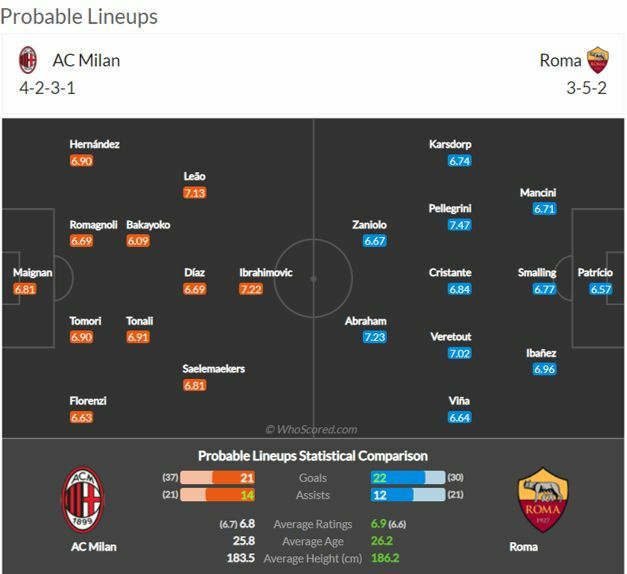 เอซี มิลาน เพิ่งกลับมาเก็บชัยชนะได้ใเนกมล่าสุด หลังสะดุดมา 3 เกมติดต่อกัน ส่วนทางด้านทีมเยือนอย่าง โรม่า เองก็กำลังฟอร์มดีอย่างต่อเนื่อง คาดว่าเกมนี้จะสนุกสูสี และน่าจะแบ่งกันไปทีมละ 1 คะแนน