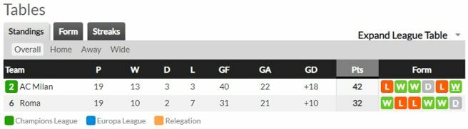 - เอซี มิลาน ยิงประตูใส่ โรม่า ได้อย่างน้อย 2 ประตูในการพบกับ 4 เกมล่าสุด (รวมทุกรายการ)