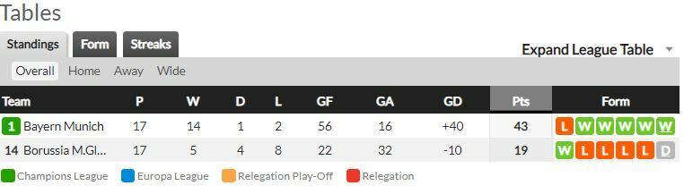 - อาดี้ ฮึทเทอร์ นายใหญ่ของ มึนเช่นกลัดบัค ไม่ชนะใครติดต่อกันมาแล้ว 5 เกม นัดที่แล้วในลีก พวกเขาเสมอ ฮอฟเฟ่นไฮม์ 1-1 ก่อนแข่งเกมนี้ มึนเช่นกลัดบัค มีอยู่ 19 แต้ม จากการลงเล่นไป 17 นัด รั้งอันดับ 14 ของตารางลีก