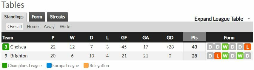 - เชลซี ไม่แพ้ ไบรท์ตัน มาแล้ว 10เกมติดต่อกัน (รวมทุกรายการ)