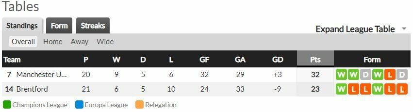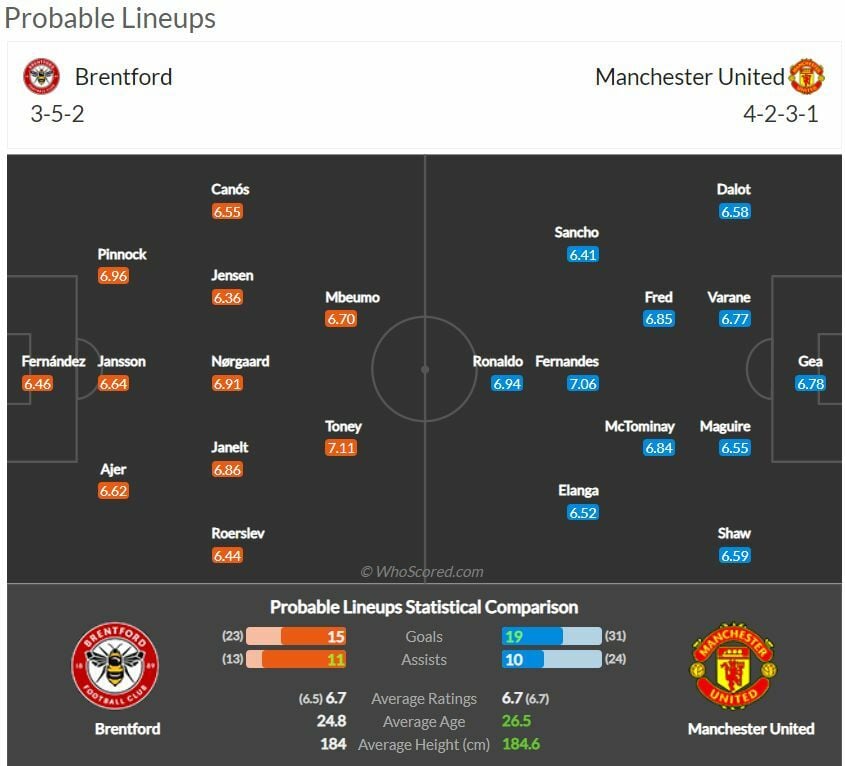 ในช่วงหลัง เบรนท์ฟอร์ด ฟอร์มไม่ค่อยเสถียรอย่างหนัก แต่แนวรุกของพวกเขาก็สามารถสร้างปัญหาให้กับคู่ต่อสู้ได้เป็นอย่างดี ส่วนทางด้าน แมนฯ ยูไนเต็ด เองก็มักเสียประตูง่ายๆจนทำแต้มหล่นไปหลายแต้มแล้ว คาดว่าในเกมนี้ทั้งสองทีมจะเปิดเกมบุกใส่กับ และจะจบลงที่ผลเสมอแบบมีสกอร์
