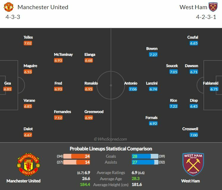 แมนฯ ยูไนเต็ด แม้จะชนะมาได้ในเกมล่าสุด แต่ฟอร์มโดยรวมยังไม่ค่อยดีนัก ด้าน เวสต์แฮม ก็เป็นอีกทีมที่มักจะสร้างปัญหาให้ทีมใหญ่ได้ตลอด และไม่อยากเสียแต้มในเกมนี้ เนื่องจากหากแพ้จะโดนแซงทันที รูปเกมจึงน่าจะสูสีและอึดอัดสำหรับเจ้าบ้าน ก่อนที่สุดท้ายจะเป็นทีมเยือนที่บุกมาแบ่งแต้มได้สำเร็จ