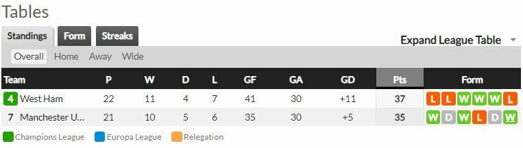 - แมนฯ ยูไนเต็ด มีสถิติไม่แพ้เวสต์แฮมในบ้านตัวเองมาแล้ว 13 นัดติดต่อกัน (ทุกรายการ)