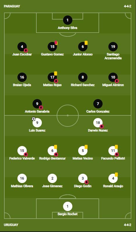 | กุสตาโว่ โกเมซ (ใบแดง) | 90+5 |