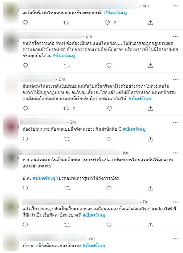 เมื่อคลิปนี้ได้ถูกแชร์ออกไปอย่างแพร่หลาย ก็เริ่มมีชาวเน็ตมากมายที่ไม่เห็นด้วยกับการกระทำในครั้งนี้ และติดแฮชแท็ก #บีมศรัณยู กันมากมาย พร้อมพุ่งประเด็นไปถึงเรื่องความปลอดภัยในการขับรถบนท้องถนน อาทิ “น่ากลัวว่ะคนแบบนี้ประมาทเกิน จะตายคนเดียวไม่อะไรหรอก แต่กลัววันข้างหน้าอาจไปเดือดร้อนคนอื่น” และ “ครอบครัวเตือนสติเค้าบ้างมั้ย เป็นห่วงเค้ามั้ย กลัวเค้าเกิดอุบัติเหตุมั้ย หรือคิดว่าเท่ดี”