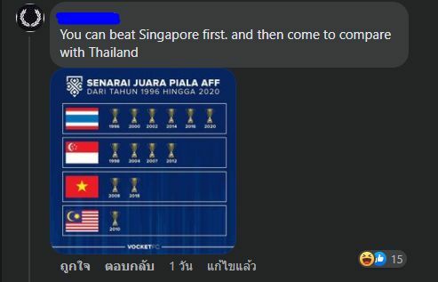 โพสต์ดังกล่าว ทำให้แฟนบอลทัพช้างศึก ทีมชาติไทย บางส่วนอดรนทนไม่ไหว ได้เข้าไปคอมเมนท์กันอย่างล้นหลาม พร้อมกับแนบผลงานในศึก เอเอฟเอ ซูซูกิ คัพ 2020 เมื่อช่วงปลายปีก่อน ให้แฟนบอลเวียดนามได้ชมเป็นขวัญตา