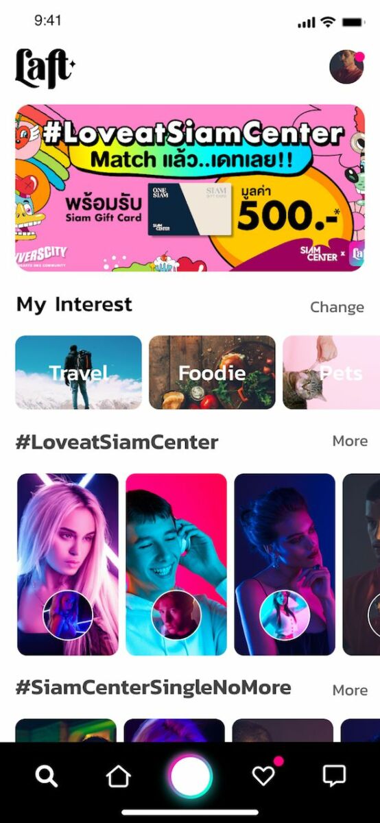 ในเดือนแห่งความรักนี้ Laft จึงขอฉลองการเปิดตัวอย่างเป็นทางการด้วยการจับมือกับ “สยามเซ็นเตอร์” ส่งแคมเปญสำหรับคนหัวใจว่าง พร้อมมีคู่ “#LoveatSiamCenter” ให้ทุกคนเริ่มต้นเส้นทางสีชมพูนี้ด้วยการจับมือไปออกเดทท่ามกลางบรรยากาศสุดแสนน่ารัก โรแมนติก และน่าจะจำที่สยามเซ็นเตอร์ เพียงแค่ผู้ร่วมแคมเปญลงวิดีโอที่มีสติ๊กเกอร์ #LoveatSiamCenter ทั้ง 2 ฝ่าย Match หรือจับคู่ ภายในแคมเปญและต้องมีสติ๊กเกอร์เดียวกัน จูงมือกันมาเดทที่ “สยามเซ็นเตอร์” พร้อมรับ Siam Gift Card มูลค่า 500 บาท ในวันที่ 14-15 กุมภาพันธ์ 65 นี้ และไม่เพียงแค่ 2 วันนี้เท่านั้น หากว่าคู่ไหนที่ Match กันบน Laft ก็ยังสามารถมารับ Siam Gift Card มูลค่า 200 บาทให้ไปจับมือเดทกันได้ตลอดเดือนกุมภาพันธ์นี้กับแคมเปญ #SiamCenterSingleNoMore