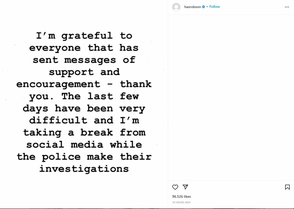 “ช่วงหลายวันที่ผ่านมามันยากลำบากมาก และฉันของดใช้โซเชียลมีเดียในขณะที่ตำรวจกำลังทำการสืบสวน”