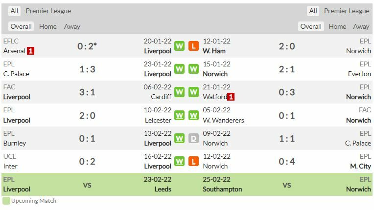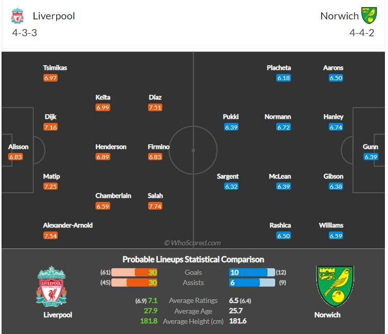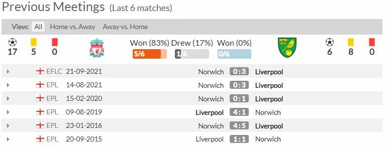- ลิเวอร์พูล มีสถิติยิงประตูใส่ นอริช ซิตี้ ได้อย่างน้อยเกมละ 3 ลูก ใน 9 จาก 11 นัดหลัง (ทุกรายการ)