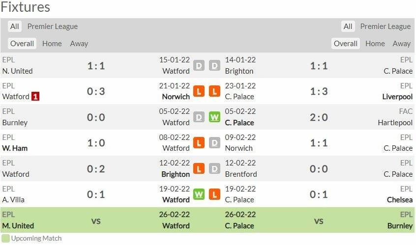 วัตฟอร์ด เพิ่งเก็บชัยชนะมาได้ในเกมล่าสุด ส่วนทางด้าน คริสตัล พาเลซ ไม่ชนะใครมาแล้ว 3 เกมติดต่อกันรวมทุกรายการ ด้วยตัวผู้เล่นที่ค่อยข้างสูสี คาดว่าเกมนี้จะจบลงด้วยผลเสมอ