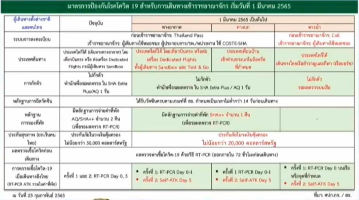 ที่ ประชุม ศบค. เคาะ เปิดชายแดน ทั้งทางบกและทางน้ำ ยกเลิกตัว RT-PCR ผู้ที่เดินทางจาก ตปท. ในวันที่ 5 พร้อมปรับนโยบายเรียน On-Site ส่วนนโยบายโควิดอื่นๆไม่มีการเปลี่ยนแปลง