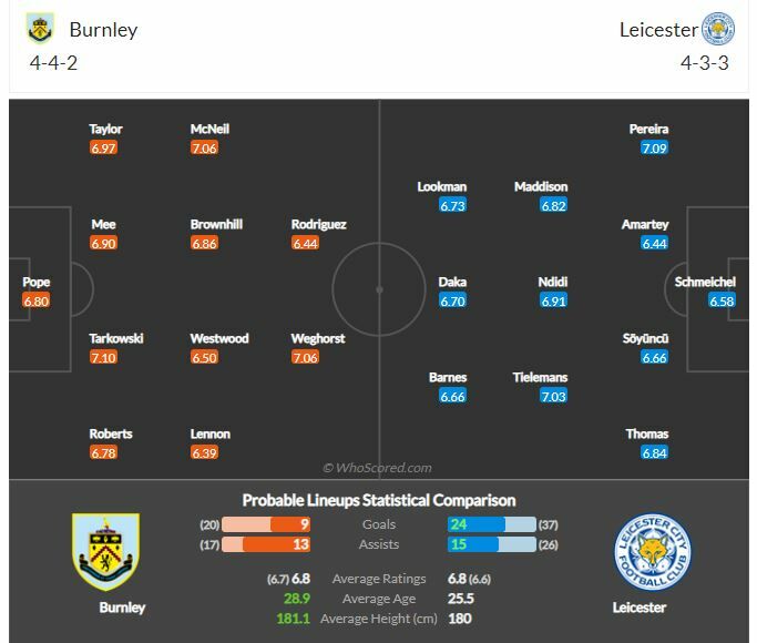 เบิร์นลีย์ และ เลสเตอร์ ซิตี้ ฟอร์มรูดและเก็บแต้มได้ไม่ดีนักในฤดูกาลนี้ ทั้งสองทีมต่างต้องการแต้มทั้งคู่ โดยเฉพาะเจ้าบ้านที่กำลังลุ้นหนีตกชั้นอยู่ น่าจะสู้เต็มที่และน่าจะยันเสมอในบ้านตัวเองได้เป็นอย่างน้อย