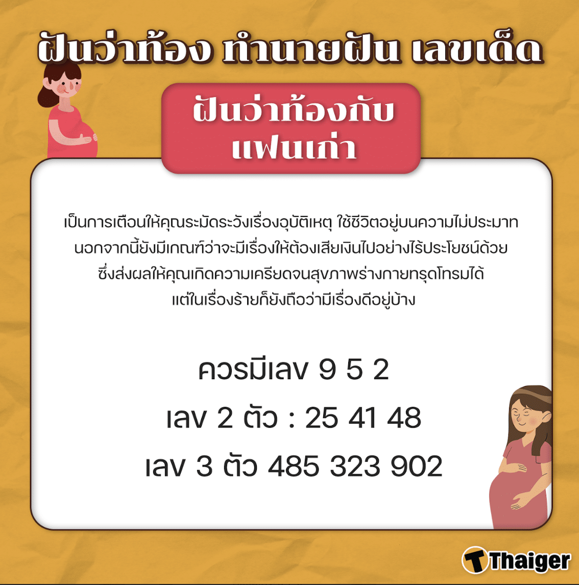 - เลขเด็ดฝันว่าตัวเองท้องกับแฟนเก่า : ควรมีเลข 9 5 2