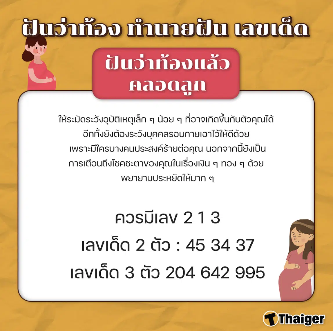 - เลขเด็ดฝันว่าตัวเองท้องแล้วคลอดลูก : ควรมีเลข 2 1 3