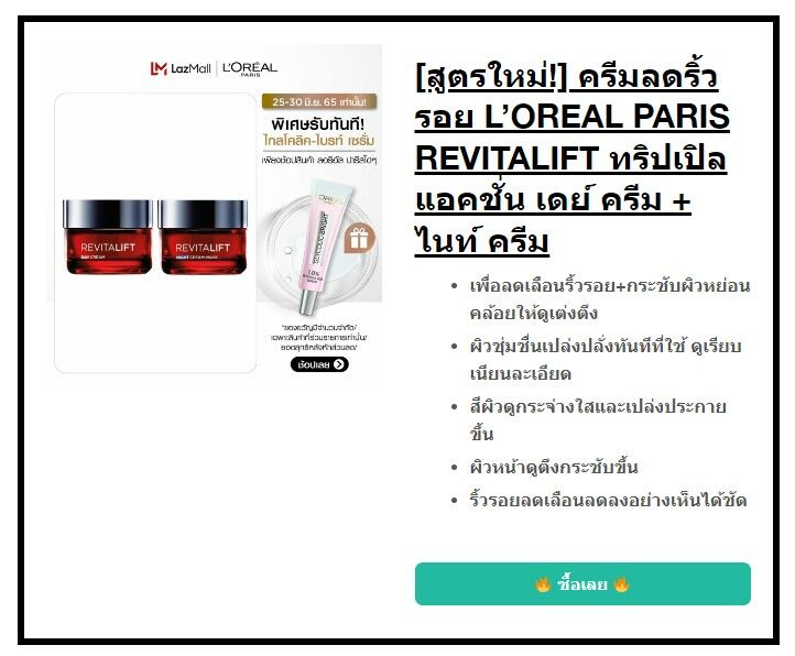 L’OREAL PARIS REVITALIFT TRIPLE ACTION ราคาเท่าไหร่ ซื้อที่ไหน