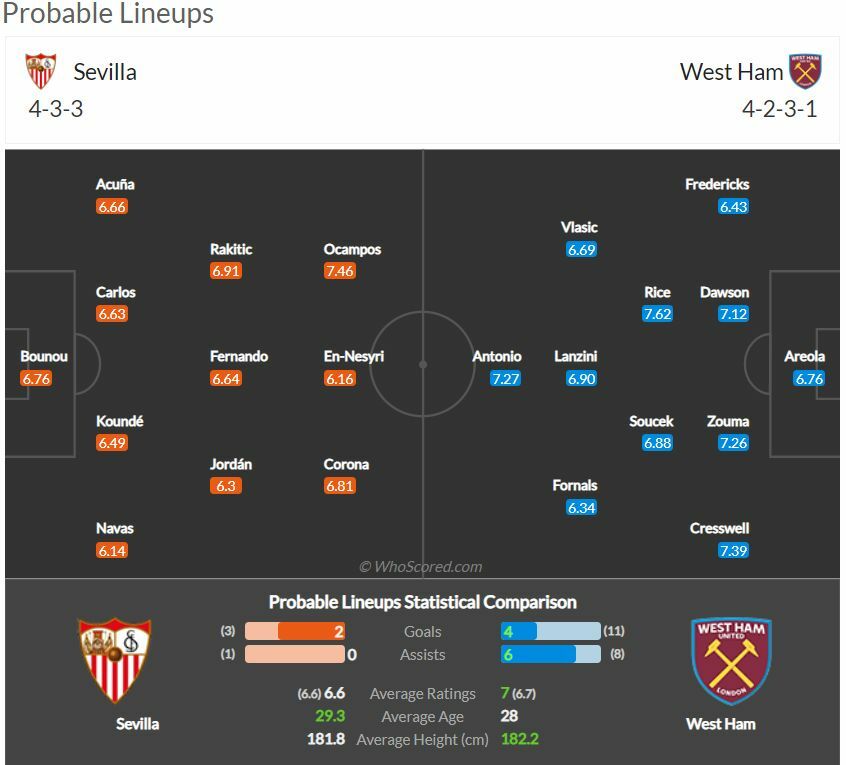 เซบีย่า ทำผลงานได้ดีในซีซั่นนี้ หลังรั้งอันดับที่ 2 ของศึก ลาลีกา สเปน แต่ฟอร์ม 4 เกมล่าสุด ชนะได้แค่เกมเดียวเท่านั้น ส่วนทางด้าน เวสต์แฮม เองฟอร์ไม่ค่อยดีสักเท่าไรนัก หลังชนะได้แค่เกมเดียวจาก 5 นัดลังสุด คาดว่าเกมนี้จะเป็นเจ้าบ้านที่เอาชนะไปได้ในเกมแรก
