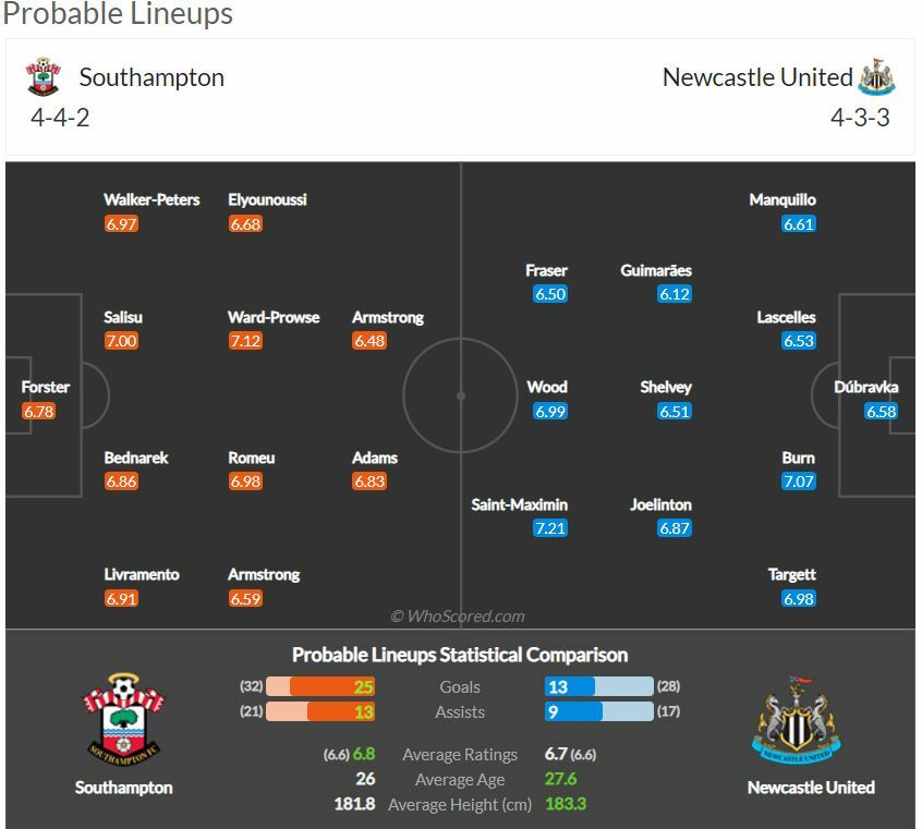 เซาธ์แฮมป์ตัน ยังคงทำผลงานได้ดีใน 6 เกมที่ผ่านมา ด้วยสถิติชนะ 4 เสมอ 1 แพ้ 1 ส่วนทางด้าน นิวคาสเซิ่ล ไร้พ่ายมา 7 เกมติดต่อกัน จนหลุดพ้นจากโซนตกชั้น เกมนี้คาดว่าจะออกมาสนุกสูสี แต่คาดว่าจะจบลงด้วยผลเสมอแบบมีสกอร์ แบ่งกันไปทีมลั 1 คะแนน