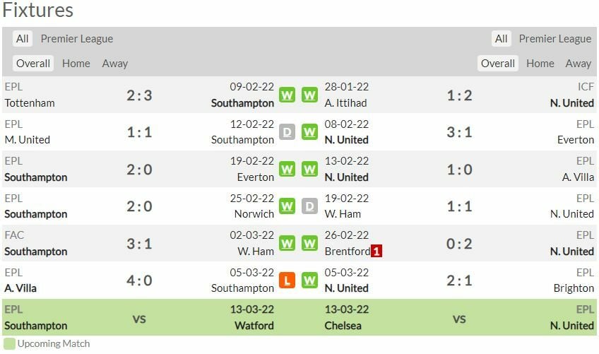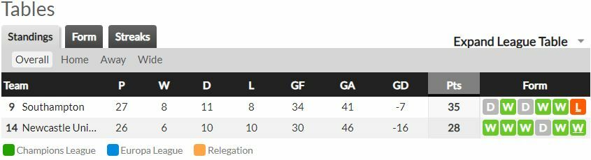 | เซาธ์แฮมป์ตัน พบกับ นิวคาสเซิ่ล |