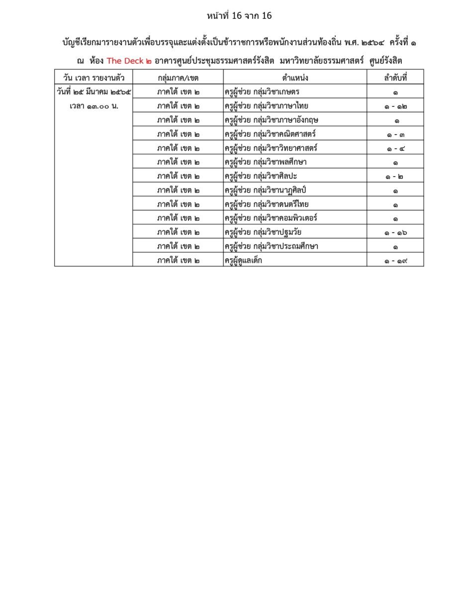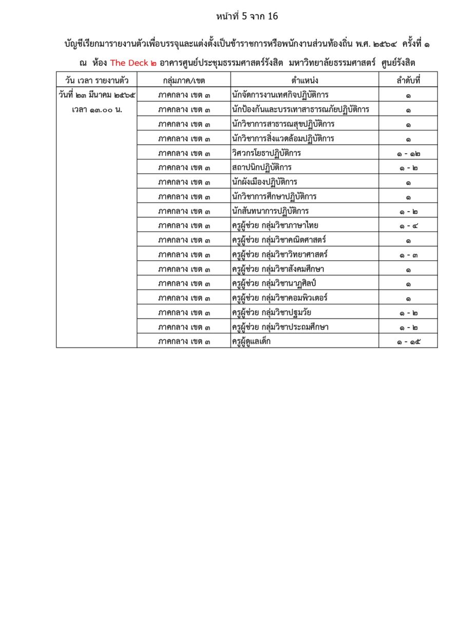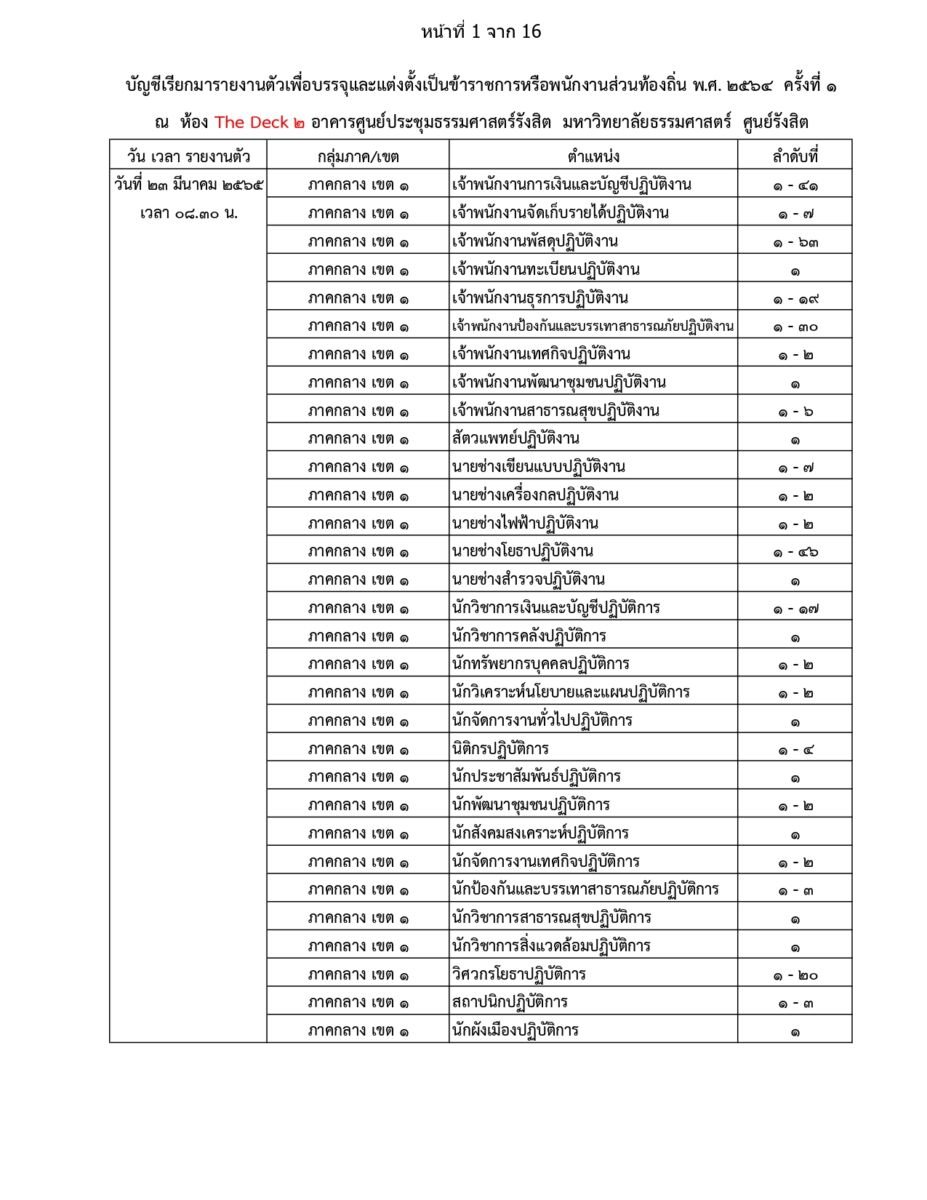 บัญชีเรียกรายงานตัวเพื่อบรรจุและแต่งตั้งเป็นข้าราชการหรือพนักงานส่วนท้องถิ่น 2564 ครั้งที่ 1