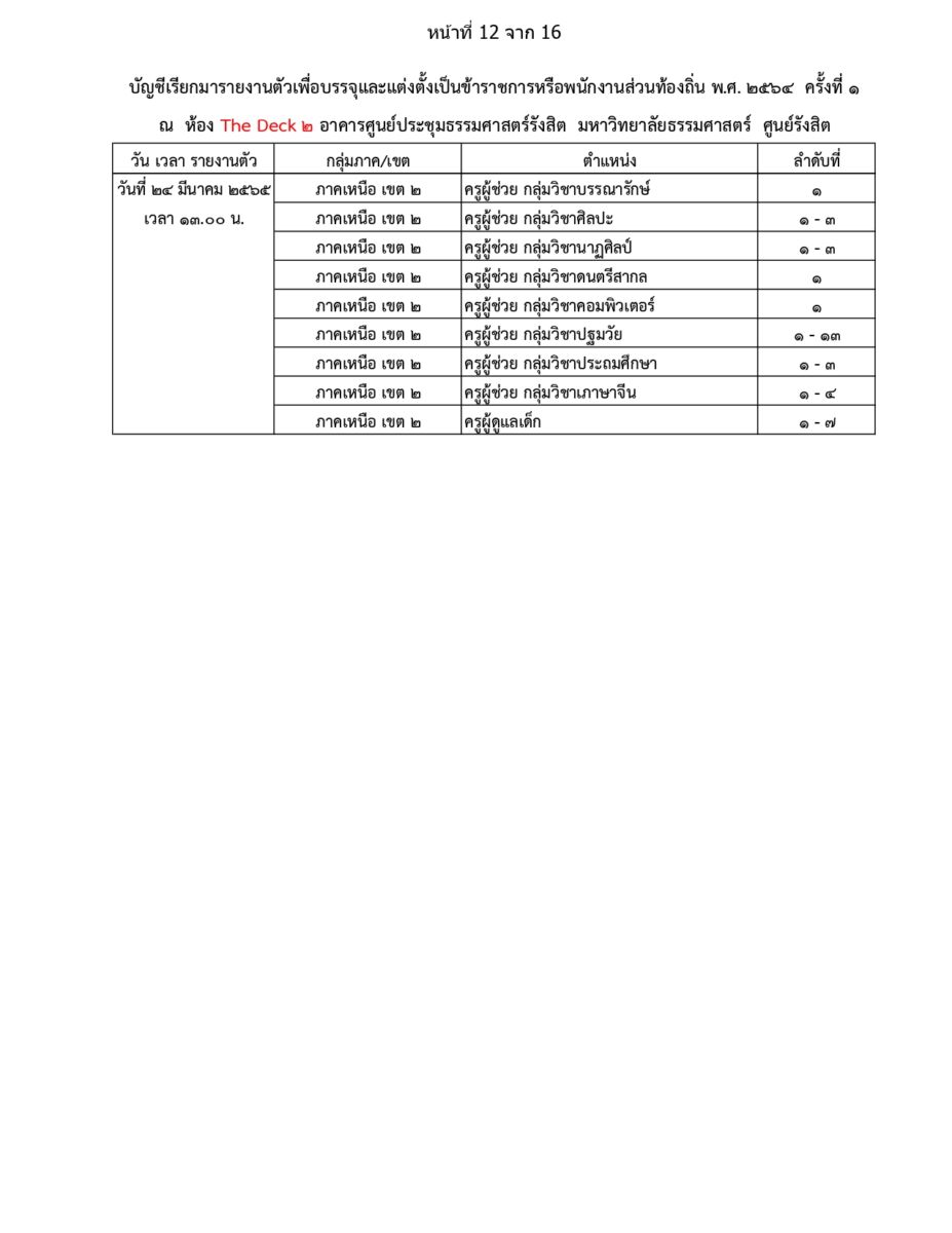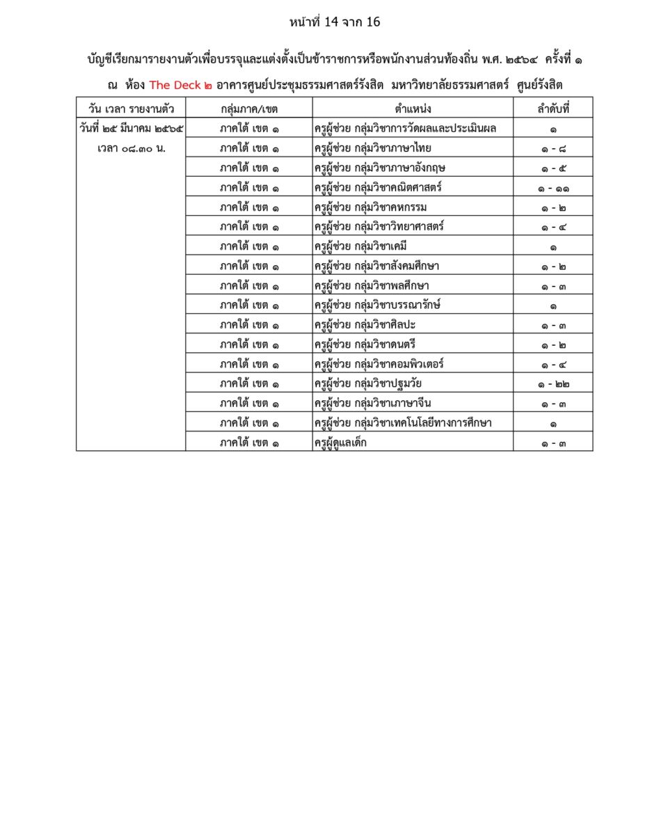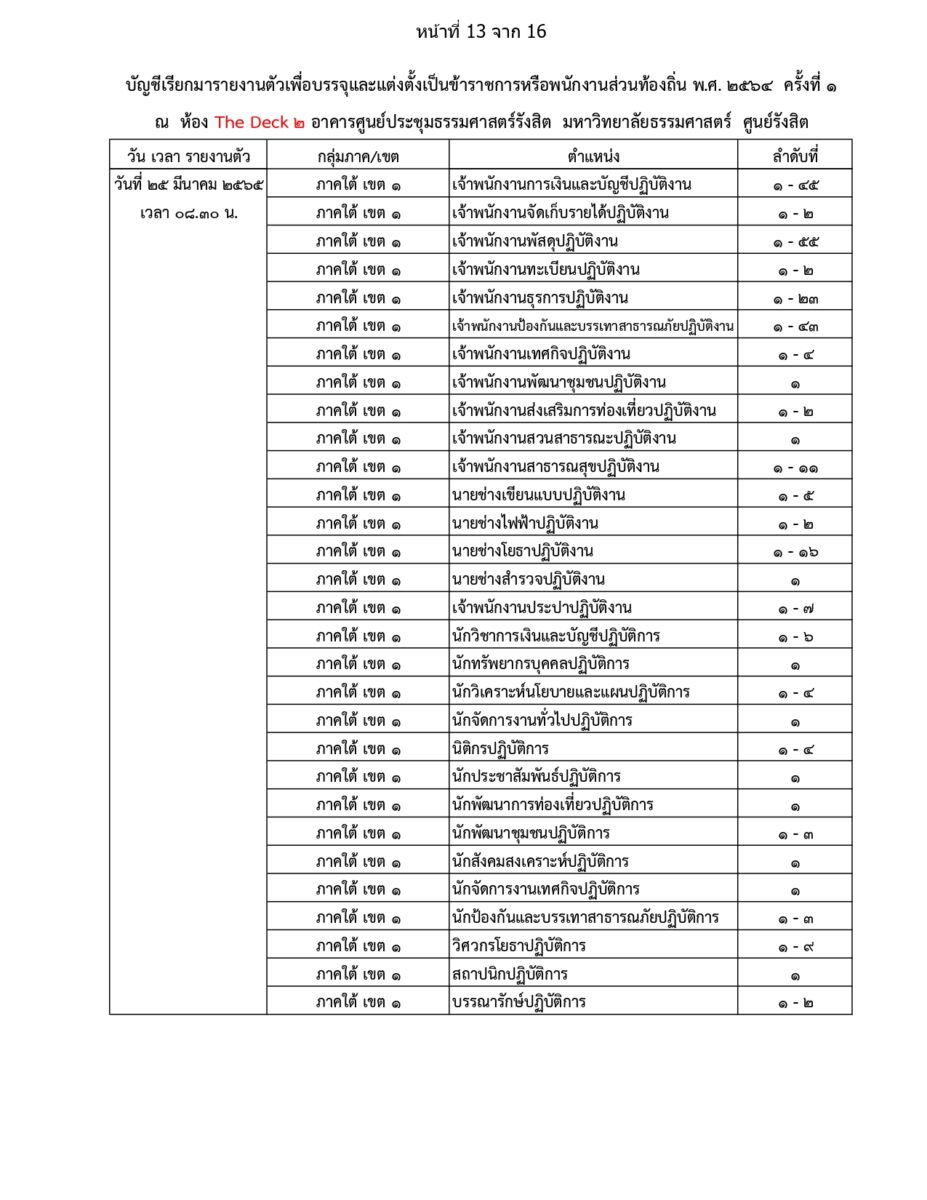 บัญชีเรียกรายงานตัวเพื่อบรรจุและแต่งตั้งเป็นข้าราชการหรือพนักงานส่วนท้องถิ่น 2564 ครั้งที่ 1